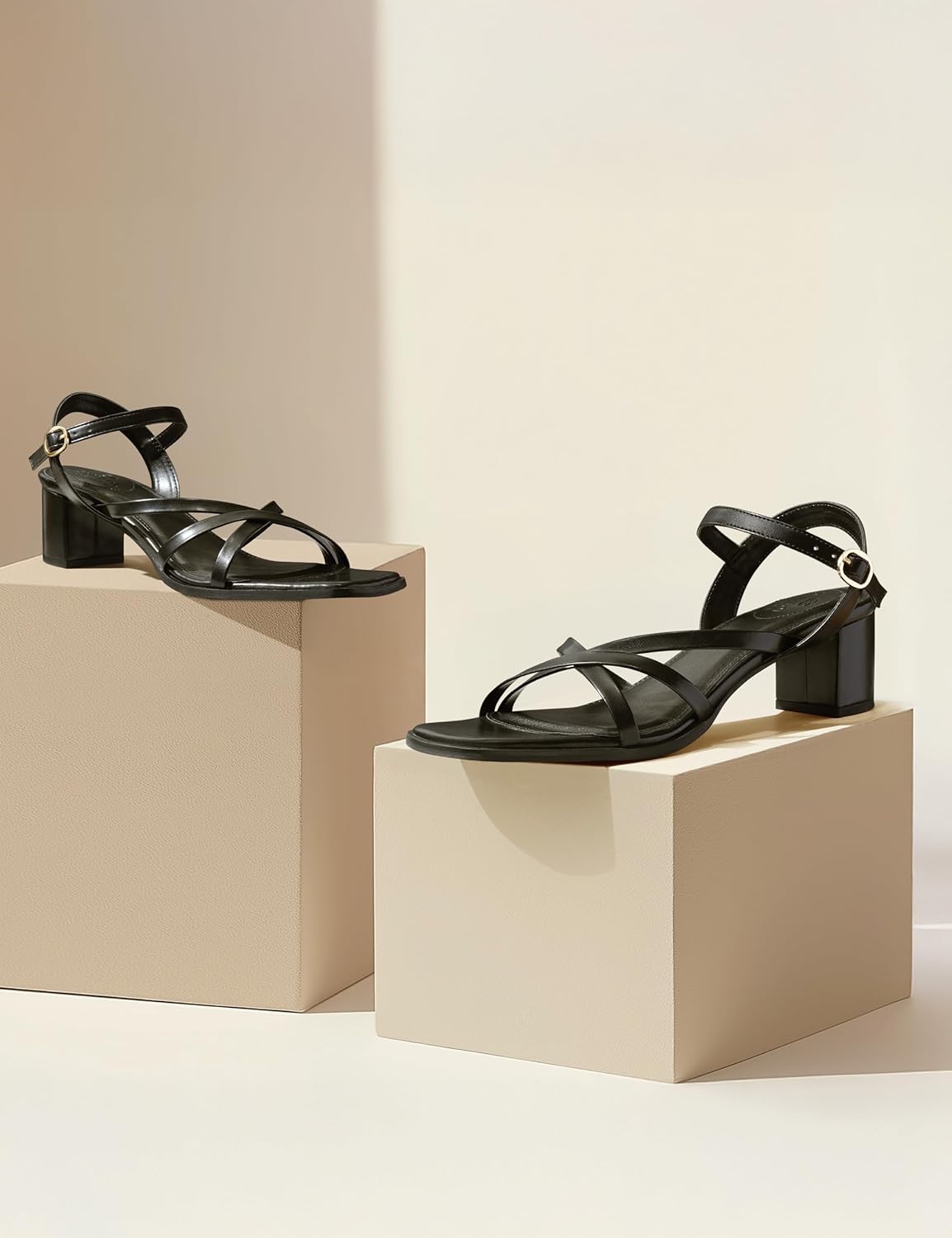 The sandals feature a modern cross-strap upper design that keeps your feet secure while adding a sleek and fashionable appearance. The adjustable ankle strap with a metal buckle ensures a comfortable and customizable fit, allowing you to walk confidently throughout the day.